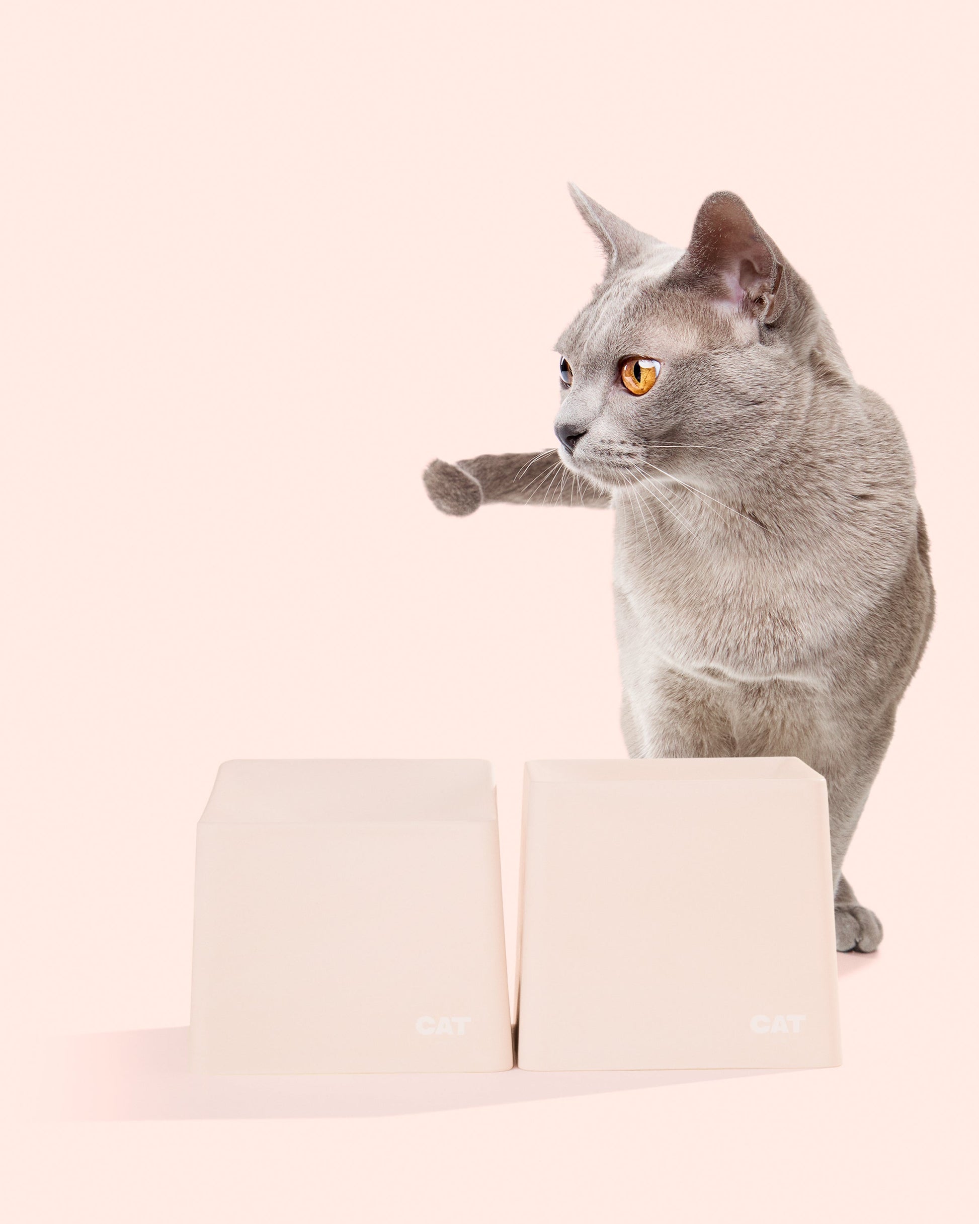 Product description We know what you’re thinking, bowls are meant to be round. But what if they weren’t? What if they were *gasp* square? Designed to fit snuggly into the corner of a room, where they can’t get knocked over or stepped on? And what if they were raised, extra wide and shallow, so your cat can be more comfortable when drinking or eating? All while being 100% compostable. That’d be nuts, right?