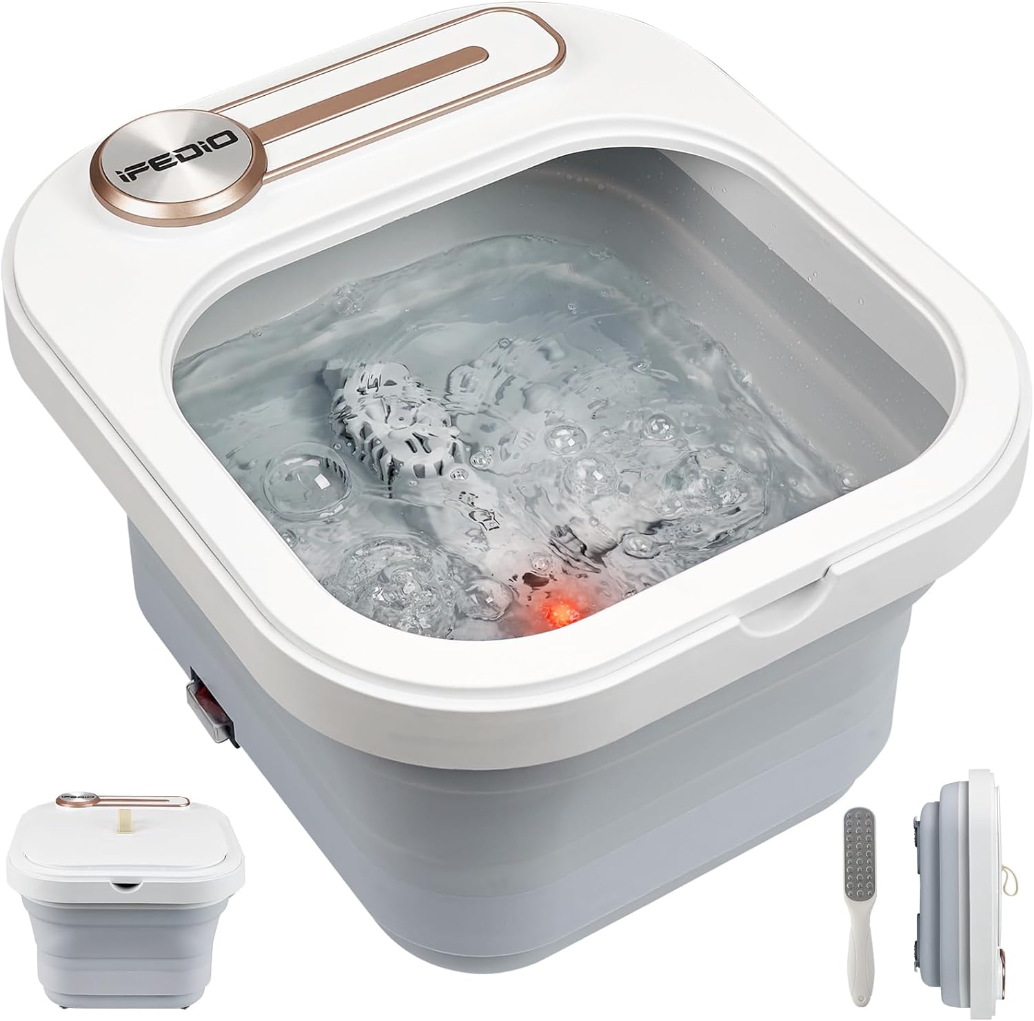Collapsible Foot Spa Bath with Heat and Massage and Jets,Pedicure Foot Spa,Foot Soak Tub with Non-Motorized Massage Rollers and Foot File, Foot Massager Spa-White