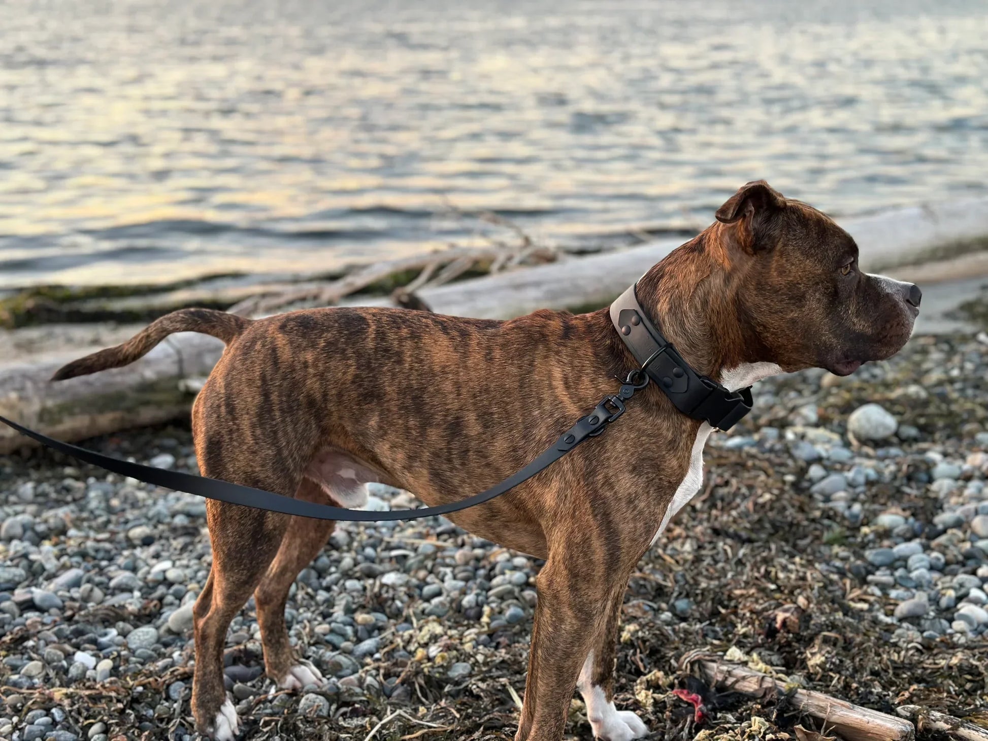 All dog people collars, leashes, harnesses and traffic handles are made with BioThane® material. We love BioThane® because it’s easy to clean, doesn’t absorb odours, is extremely durable, and most importantly it’s waterproof! It’s the perfect choice for dog people who don’t want to worry about the elements compromising their gear.