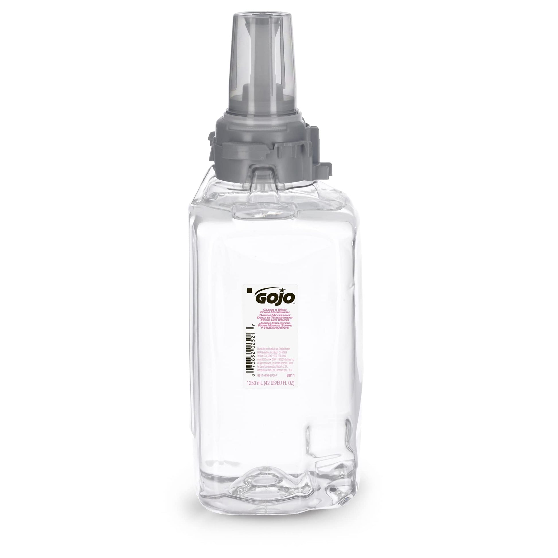 Details: Spa-inspired, foam hand soap offers luxurious lather and is enriched with moisturizers and skin conditioners. Clear and Mild Handwash delights users while supporting a healthy environment. Bio-based, fragrance-free, dye-free formulation is green certified, USDA certified and EcoLogo certified. 1250 ml refill is designed for use in GOJO ADX-12 Manual Soap Dispensers. Patent-pending, controlled-collapse GOJO refill holds its shape as it empties for a more attractive appearance. Sanitary-sealed refill is made of durable, recyclable PET material, using 30 percent less plastic than rigid HDPE bottles. Removable pump makes recycling easy.