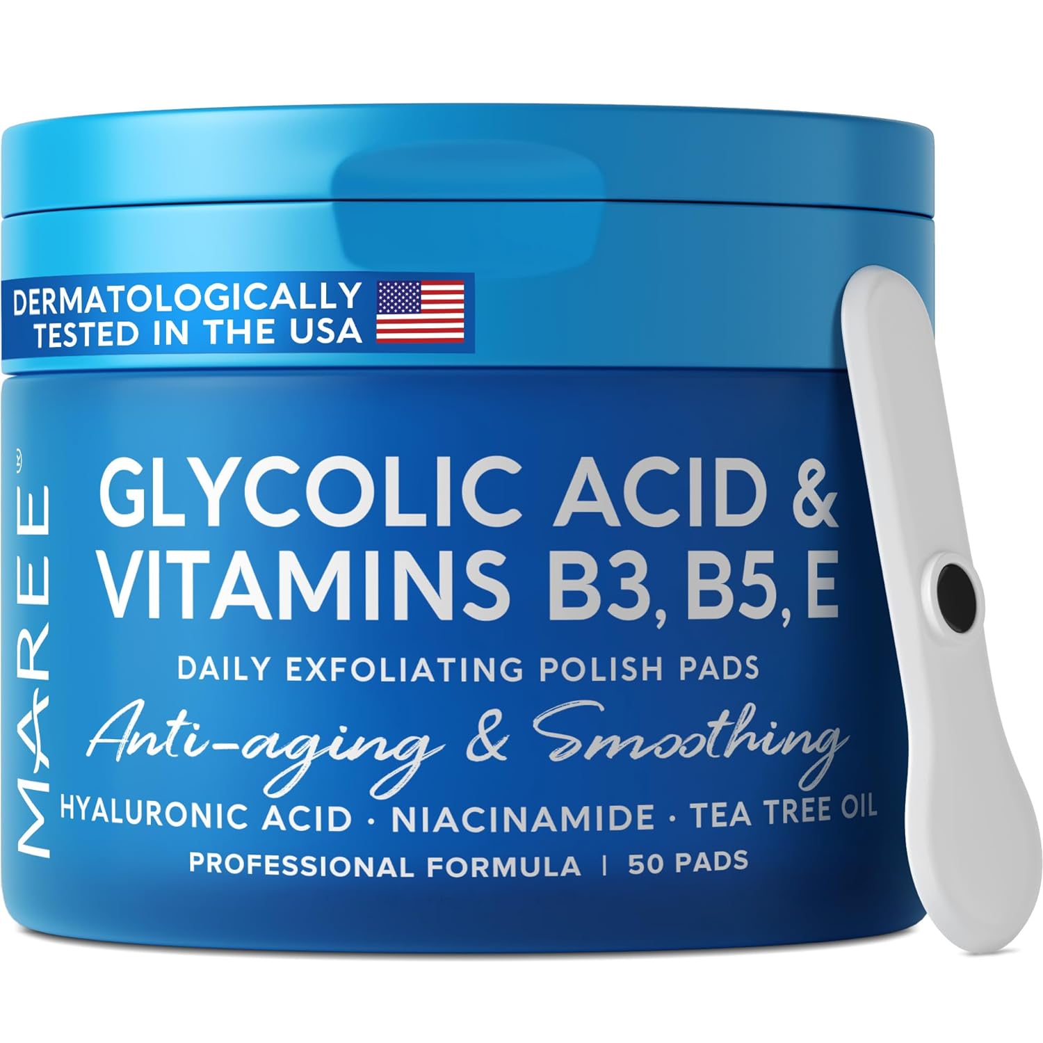 MAREE Facial Polish - Glycolic Acid Peel Pads For Face With Tea Tree Oil - Exfoliating Polish with Salicylic Acid & Vitamins E, B3, B5 - Face Pads with Skin Peeling & Deep Cleaning Effect