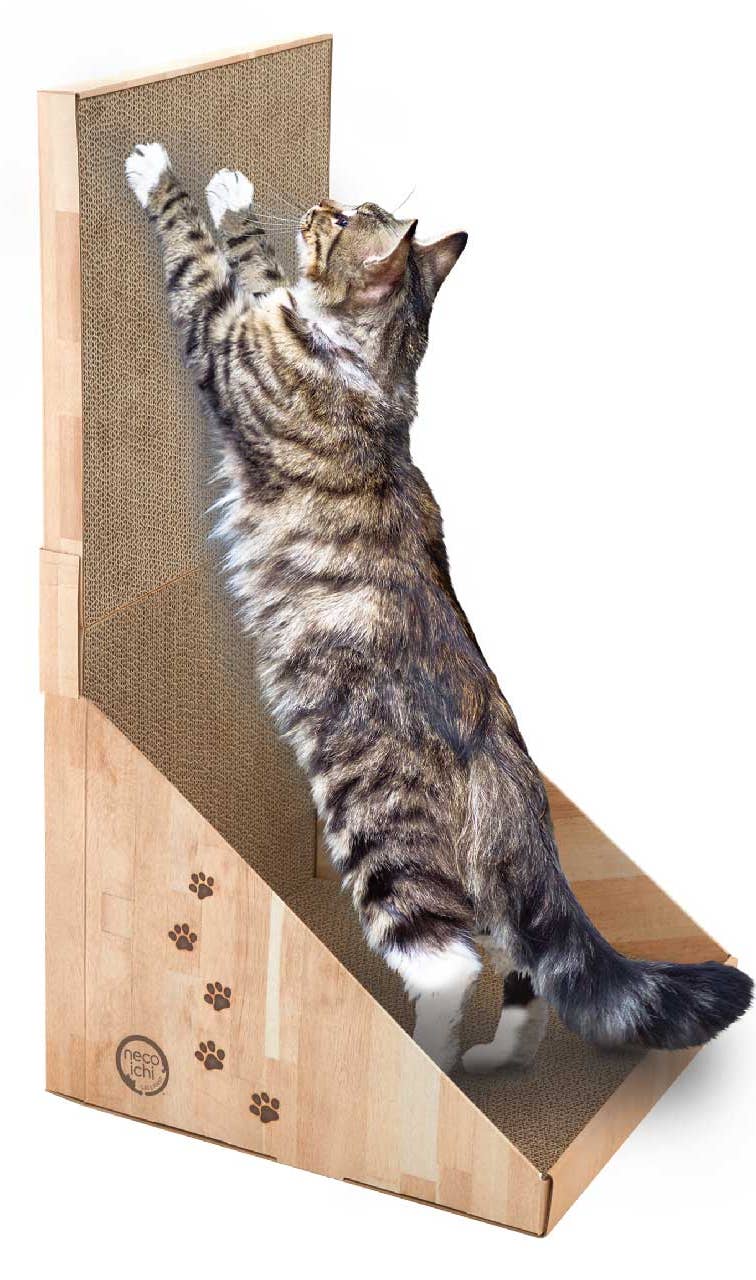 Necoichi Stretch and Scratch Wall Cat Scratcher is sturdy and stable so your cat can relax and scratch with confidence. Despite its larger 27.6-inch size, the wood panel design blends effortlessly with any home interior. Scratcher is made from 100% recycled paper, 10% of which is raw pulp paper from New Zealand. We have ensured we use the finest materials with your precious cat in mind. Dense, durable fine-grain cardboard reduces scratching waste while providing a comfortable scratching experience for your cat. All adhesives used are plant-based and free of chemicals for your cat’s safety and your peace of mind.