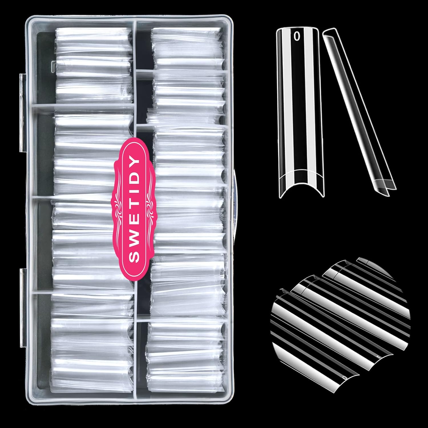 No C Curve Square Flat Nail Tips,SWETIDY 500Pcs XXL Extra Long Acrylic Clear Straight Tapered,Half Cover French Fake Nails for Nail Salon and DIY Nail Art 10 Sizes