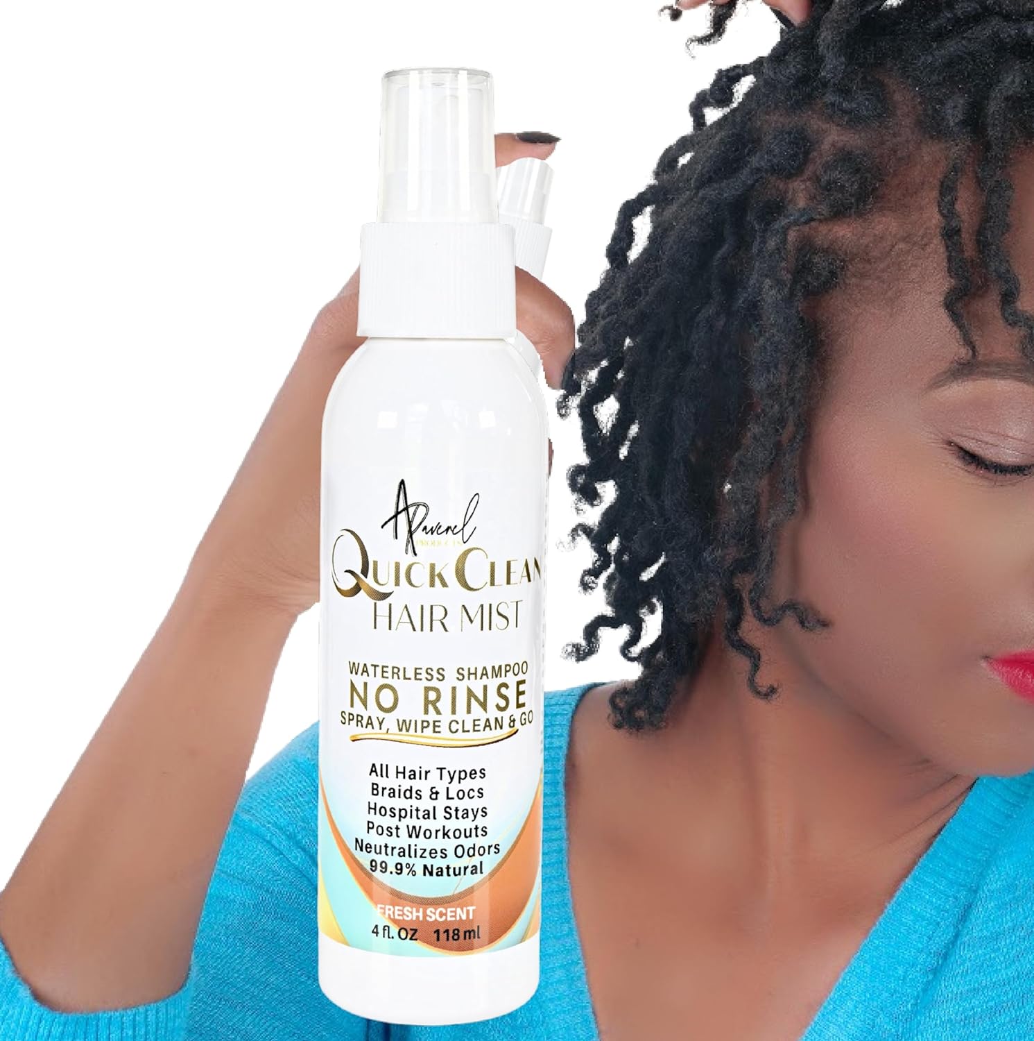No Rinse Shampoo and Conditioner Hair & Scalp Mist. All Natural. Spray, Wipe Clean and Go! For Post Workouts, Braids, Locs, Scalps, Elderly Care. No Residue.
