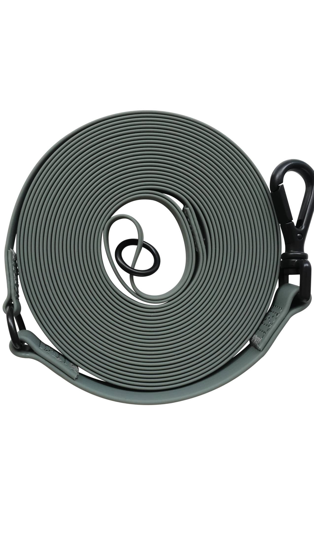 We design this all weather leash for a good 'flow' using a pliable soft vinyl coated nylon webbing which also provides a good grip.