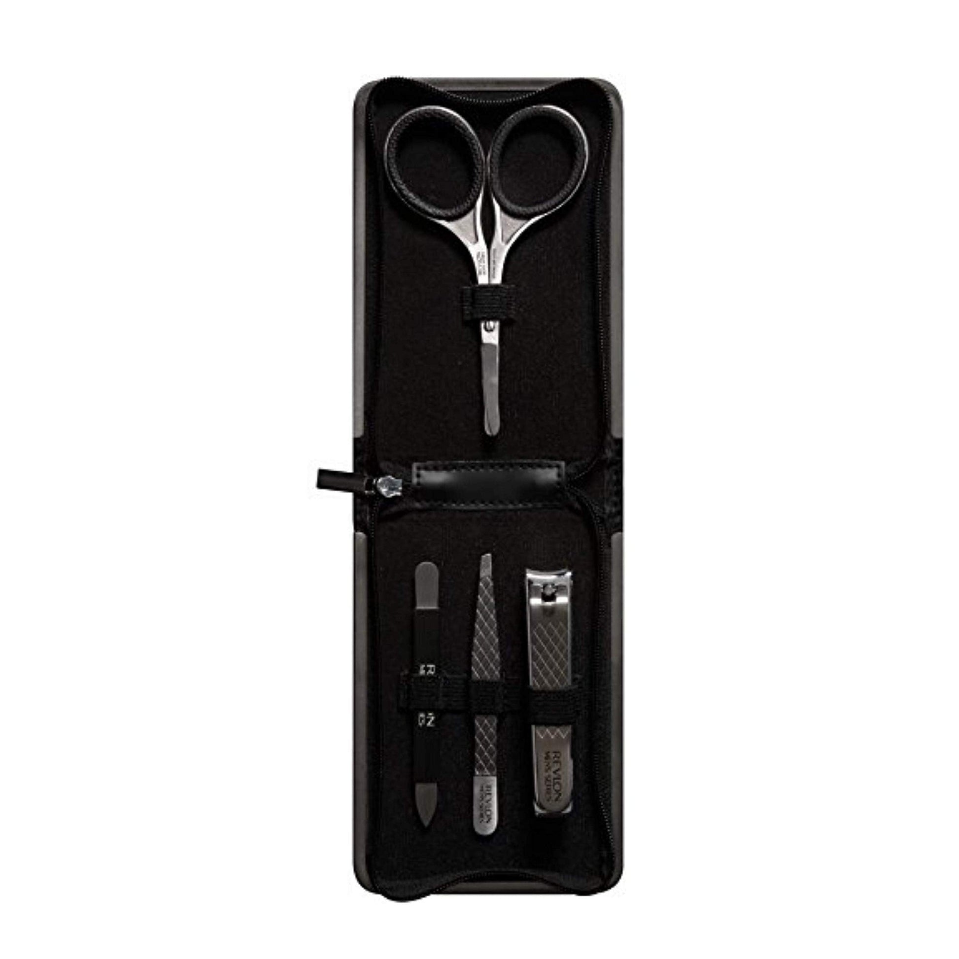 Revlon Men's Grooming Kit, Nail Clipper, Safety Grooming Scissors, Nail File & Tweezers, High Precision Hair Removal Tools, Stainless Steel (Pack of 1)