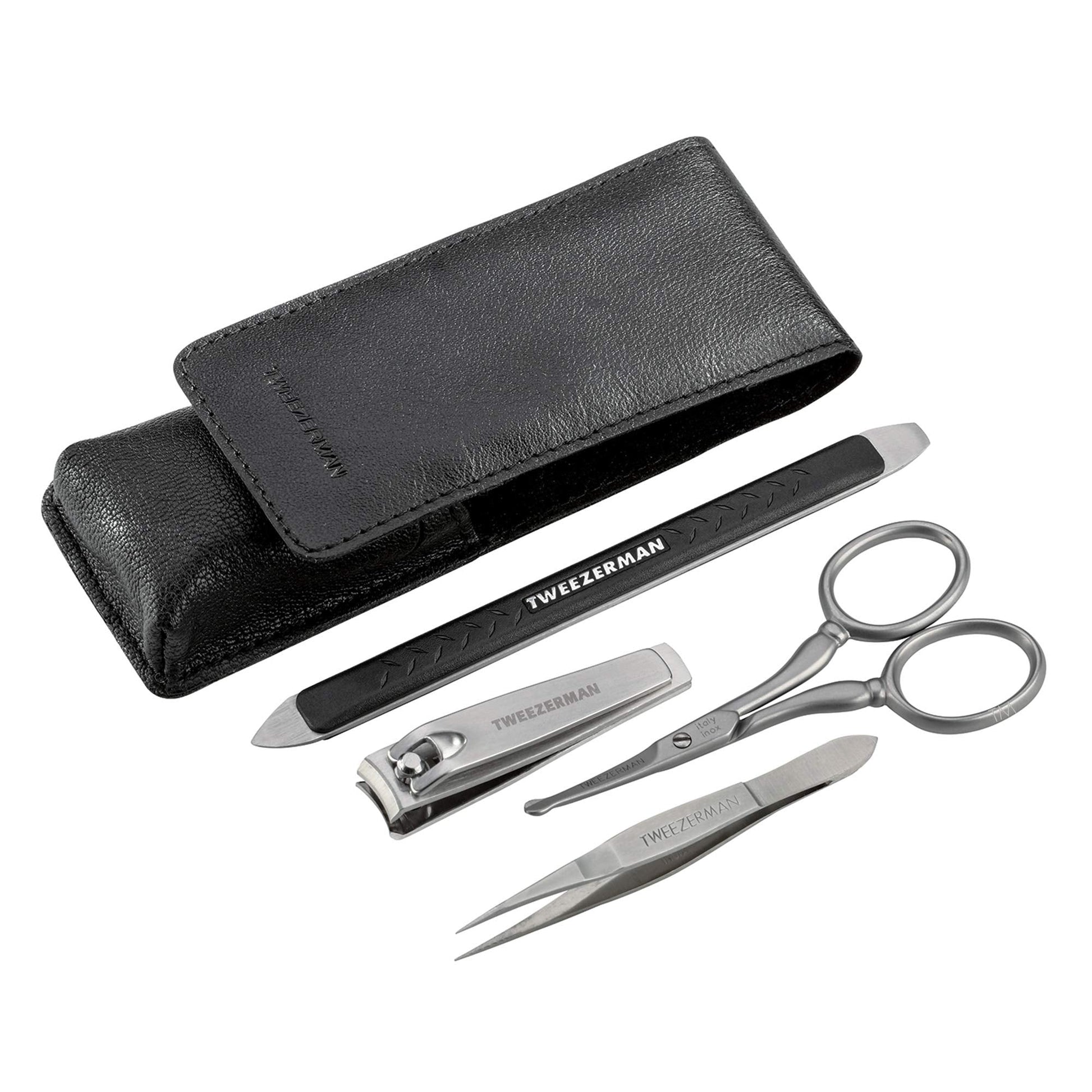 - The Essential Grooming Kit includes the Tweezerette for ingrown hair/splinter removal, Facial Hair Scissors, Fingernail Clipper with curved blade to trim nails with precision, and the Multi-Use Nail Tool for filing nails